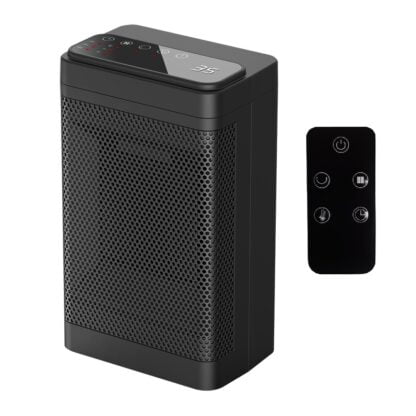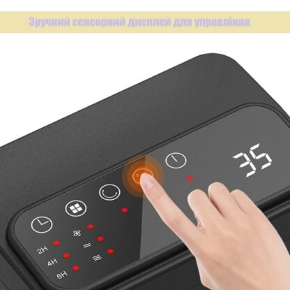 Керамический тепловентилятор Folem очень удобный в управлении, так как для этого можно использовать сенсорную панель или же инфракрасный пульт дистанционного управления. С их помощью вы можете настроить таймер автоматического отключения, вращение, выбрать поддержание стабильной температуры и один из трех режимов работы