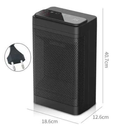 Управление возможно как через пульт, так и с помощью сенсорной панели на корпусе обогревателя. На экране тепловентилятора отображается комнатная температура. Устройство имеет компактный размер.