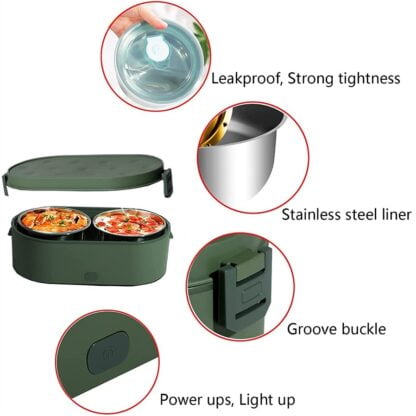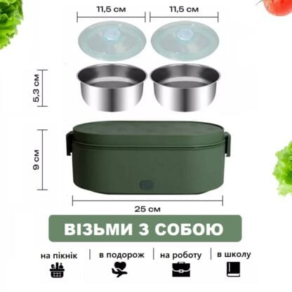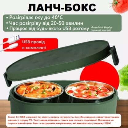 Ланч-бокс Folem D1 – это более удобная, портативная и экономная замена микроволновке. Он позволит насладиться горячей и более здоровой домашней едой где угодно и когда угодно. Подогрев от USB зарядки делает ланч-бокс универсальным. Устройство подходит для школьников, студентов, офисных работников, водителей/таксистов. Также будет полезным людям, соблюдающим диету, помогая придерживаться нужного питания. Стильный и компактный дизайн ланч-бокса сочетает корпус из полипропилена повышенной термостойкости и прочности, и 2 внутренних контейнера из нержавеющей стали общим объемом 0,8 л.