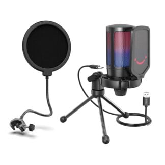 Нет в наличииFifine AmpliGame A8V USB микрофон с RGB подсветкой, поп фильтром, стойкой треногой