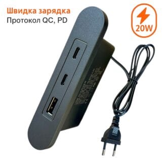 Розетка Folem RZ2-2С с выдвижними кабелями Type-C, портами Type-C и USB, быстрая зарядка 20W PD3.0 QC3.0, внутренняя
