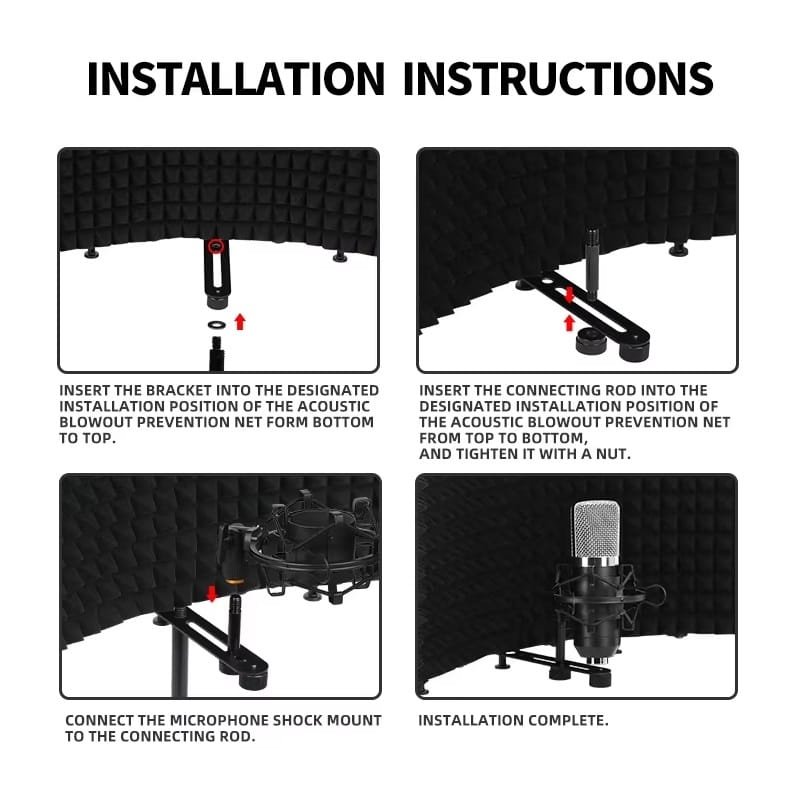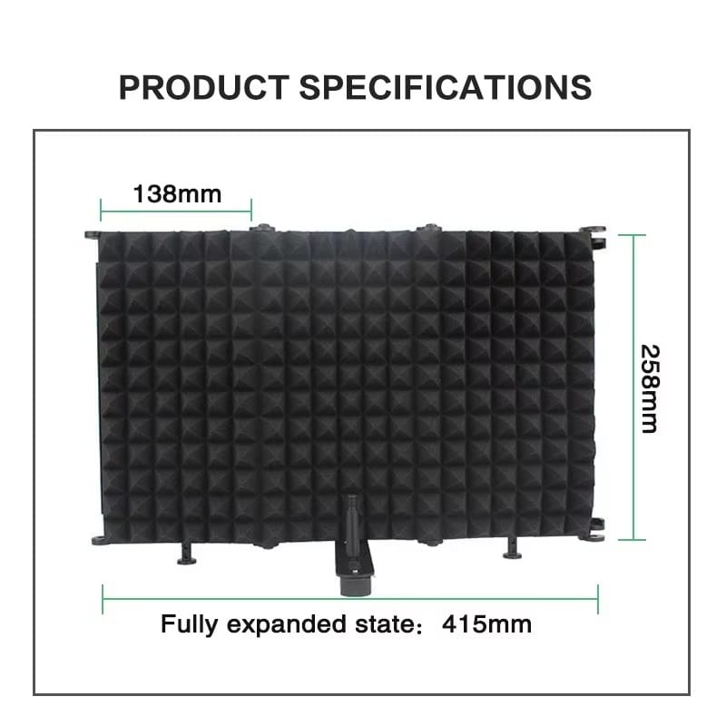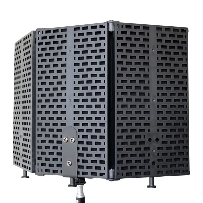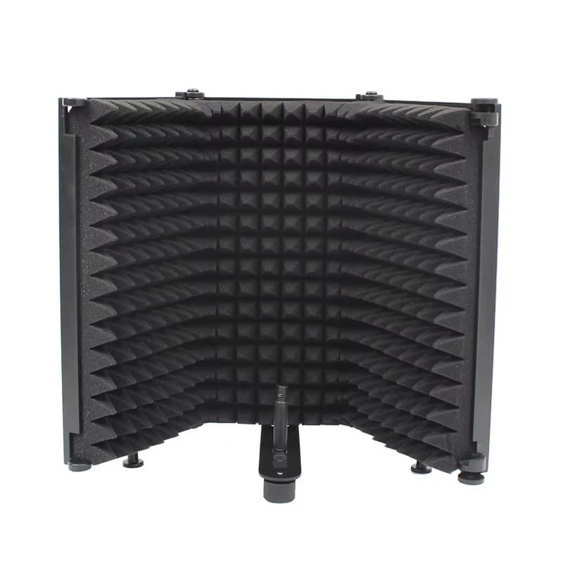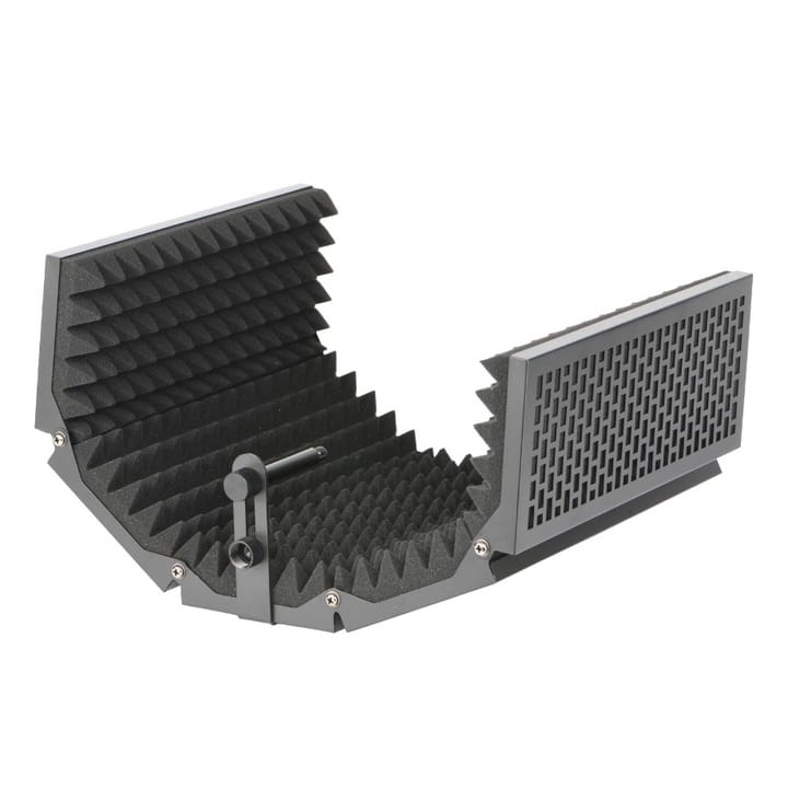 Акустический экран для микрофона позволяет сделать качественную и чистую запись в любом помещении. Экран поглощает звуковые отражения, возникающие в акустически неподготовленной комнате. Акустический экран не займет много места, не испортит дизайн комнаты, а также его можно взять на выездную звукозапись или на студию. Экран оборудован креплением для микрофона с регулируемым положением на резьбе 5/8, что позволяет монтировать к экрану практически любой микрофон. Удобство транспортировки устройства обеспечивают его небольшой вес и складная конструкция. Благодаря звукопоглощающему материалу поможет сделать чистую запись в акустически неподготовленной студии или обычной жилой комнате, без необходимости воспроизведения студийных условий или акустической коррекции помещения.