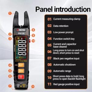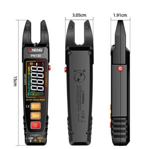 ANENG PN130 – это компактный профессиональный измерительный прибор с жидкокристаллическим цветным дисплеем и встроенным аккумулятором, который применяется для измерения основных электрических параметров: силы тока, напряжения, сопротивления, емкости и частоты. Отличительной особенностью этого прибора является дизайн в виде клещей для измерения силы тока. Достаточно внести проводник в зону измерения и прибор мгновенно определит силу переменного или постоянного тока.