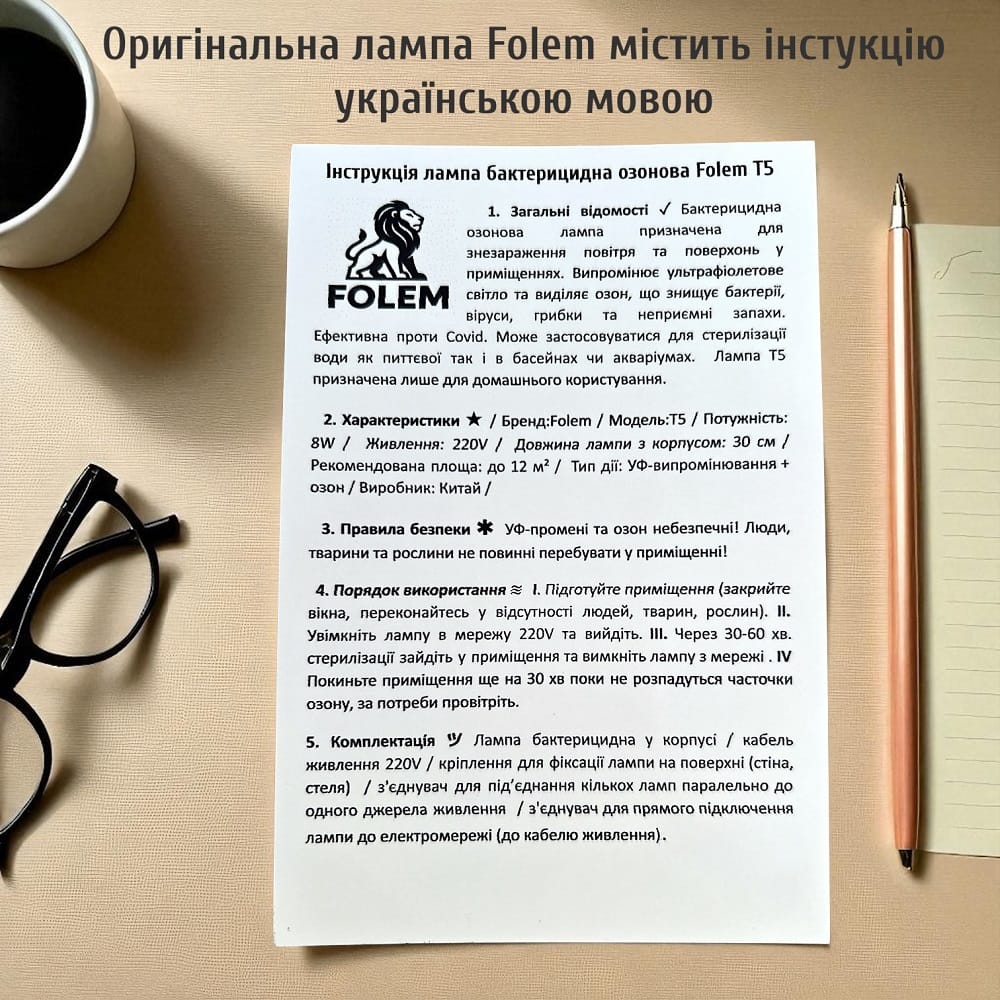 Длина лампы: 30см; Мощность: 8 Вт; Область дезинфекции: <= 12м ²