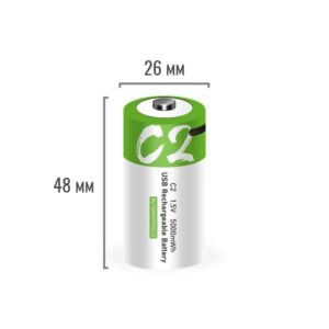 Батарейка С (R14) выполнена на базе Li-ion аккумулятора. Разряженную батарейку нужно подключить при помощи кабеля Type-C к любому USB порту и дождаться окончания заряда. Производителем заявлен ресурс около 1200 циклов “заряд-разряд”.