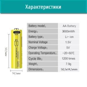 Будьте первым, кто оставил отзыв на “Батарейки AA аккумуляторные LiitoKala T36 с разъемом USB Type-C на 1.5V/3600mWh в Коробке 4ШТ. + кабель для зарядки”
