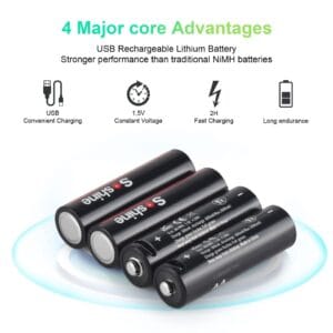 Батарейки AA Soshine 1.5V 4200mWh USB Type-C – это высококачественные литий-ионные аккумуляторы типоразмера АА с напряжением 1.5 вольта, высокой реальной емкостью 4200mWh, встроенной защитой и портом USB Type-C для зарядки от USB без необходимости наличия специального зарядного устройства. Встроенная зарядка USB позволяет заряжать данные батарейки с помощью любого USB источника питания и стандартного кабеля USB Type-C: от сетевого адаптера, автомобильного адаптера, мобильной или солнечной батареи, USB порта компьютера или ноутбука.