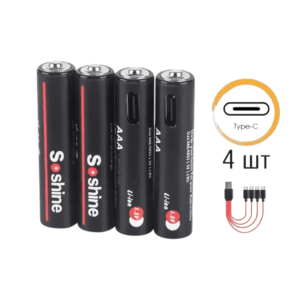 Soshine Li-Ion 1.5V AAA 1100 mWh – минипальчиковые аккумуляторы нового поколения с номинальным рабочим напряжением в 1,5 вольта. Li-Ion аккумуляторы Soshine AAA на 1,5В предназначены для устройств, которые чувствительны к низкому напряжению на питающих элементах. Встроенная зарядка USB позволяет заряжать данные батарейки с помощью любого USB источника питания и стандартного кабеля USB Type-C: от сетевого адаптера, автомобильного адаптера, мобильной или солнечной батареи, USB порта компьютера или ноутбука.