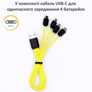 В комплекте идет кабель USB Type C, к которому подключаются сразу четыре батарейки. С другой стороны вы можете видеть стандартный USB. Зарядка осуществляется от сети с помощью адаптера питания, повербанка или компьютера. Это очень удобно, ведь вам не нужно дополнительно покупать зарядный блок. Для зарядки 730 mAh необходимо примерно 2-4 часа времени. Внимание! Когда батарейки не используются, их все равно нужно заряжать каждые 3 месяца, чтобы избежать глубокого разряда.