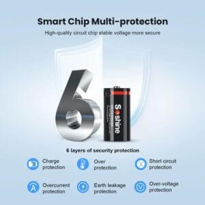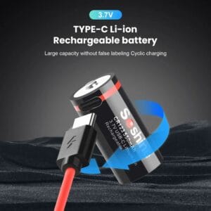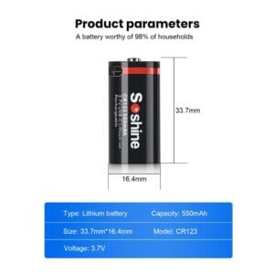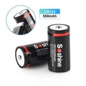 CR123(16340) Soshine – литиевые батарейки с высокой мощностью, низким уровнем саморазряда и большим сроком хранения. Эти батарейки способны стабильно работать в широком диапазоне температур. Аккумуляторные батареи Soshine CR123A подходят для самых разных устройств, таких как фонарики, диктофоны, пульты ДУ, плееры МР3, приборы ночного видения, лазерные указки, вспышки, электронные замки и счетчики, медицинское оборудование и так далее. Батарейки CR123(16340) легко заряжаются при помощи кабеля Type-C от любого USB порта.