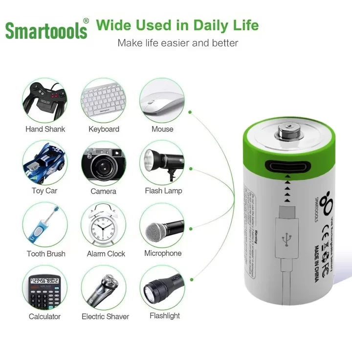 Батарейки CR2 аккумуляторные с разъемом USB Type-C от Smartoools на 3.7V/300mAh