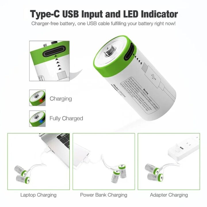 • Комплектация: батарейки + кабель USB Type-C на два выхода;