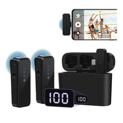 Вы ищете легкие портативные беспроводные микрофоны, которые можно незаметно закрепить на одежде и начать трансляцию за считанные секунды? У нас есть идеальное решение для вас. Этот набор петличных микрофонов вместе с блоком питания весит всего 55 грамм. Приемник 5 грамм, каждый из микрофонов по 10 грамм. Благодаря специальному кейсу вы получаете быструю зарядку микрофонов и удобное место для их хранения. Удобно то, что блок питания показывает процент заряда. Кроме того, весь комплект работает по принципу plug and play и сразу готов к работе, вам не потребуются специальные драйвера и сложные подключения. Все, что вам нужно сделать, это вставить приемник в свой телефон, и они соединятся автоматически, без необходимости загружать дополнительные приложения.