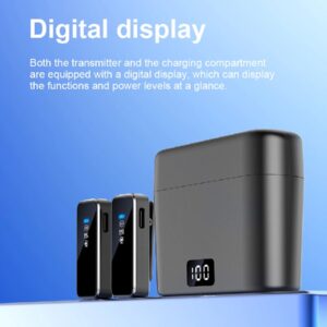 - Портативный смарт-кейс для зарядки микрофона. После полной зарядки кейса микрофон можно заряжать более 4 раз, а передатчик с максимальной мощностью может продолжать работать около 9 часов. Компактная и легкая конструкция идеально подходит для записи на открытом воздухе.