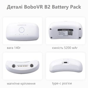 Одной из главных особенностей BoboVR B2 является возможность быстрой замены, благодаря магнитному креплению. Это позволяет пользователям не прерывать свой VR-опыт, что особенно важно для продолжительных игровых сессий или профессионального использования в виртуальной реальности. С весом всего 140 г, аккумуляторный блок помогает лучше сбалансировать нагрузку на переднюю и заднюю части головы, делая его ношение более комфортным.