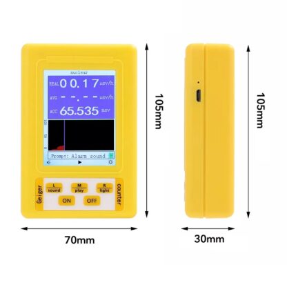 Корпус изготовлен из высококачественного АBS-пластика, который обладает высокой термостойкостью и прочностью. Яркий ЖК-дисплей с цифровыми и графическими показателями позволяет удобно отслеживать все нужные данные. Зарядка дозиметра/детектора происходит от 3 батареек АА, или через USB порт, что делает пользование устройством максимально эффективным.