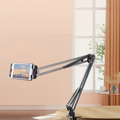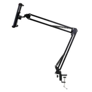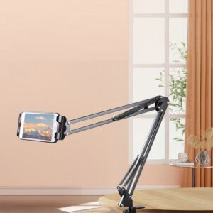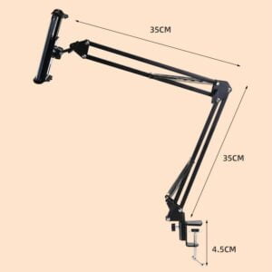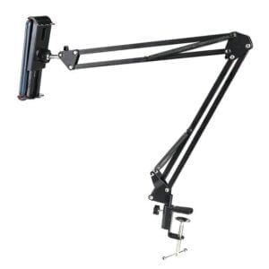 Универсальный держатель с большим количеством регулировок высоты, угла наклона, положения смартфона, лампы или другого устройства с весом не более 600 г. Пантограф для телефона крепится к столешнице толщиной до 45 мм. Верхняя часть состоит из двух штанг длиною 35 см каждая, которые соединены коленом. Данная конструкция позволяет изменять горизонтальное или вертикальное положение устройства записи от 0 до 70 см от точки крепления над столом.