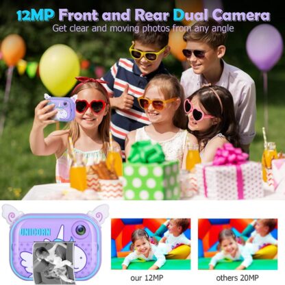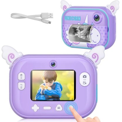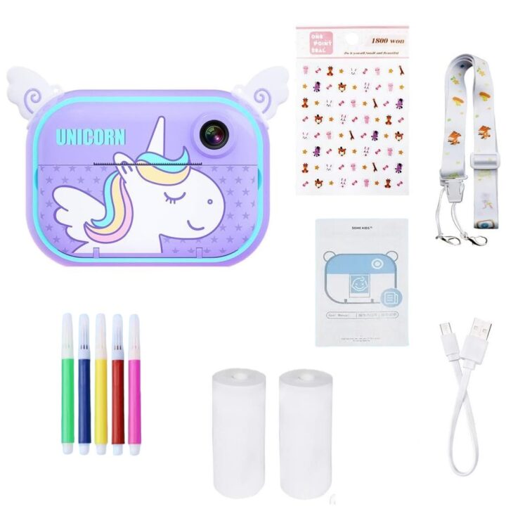 Оригинальный тематический дизайн с милым единорогом обязательно понравится детям, а яркая упаковка сделает фотоаппарат замечательным сюрпризом и запоминающимся подарком.