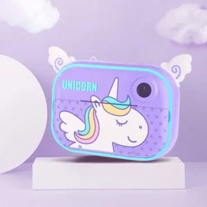 Оригинальный тематический дизайн с милым единорогом обязательно понравится детям, а яркая упаковка сделает фотоаппарат замечательным сюрпризом и запоминающимся подарком.