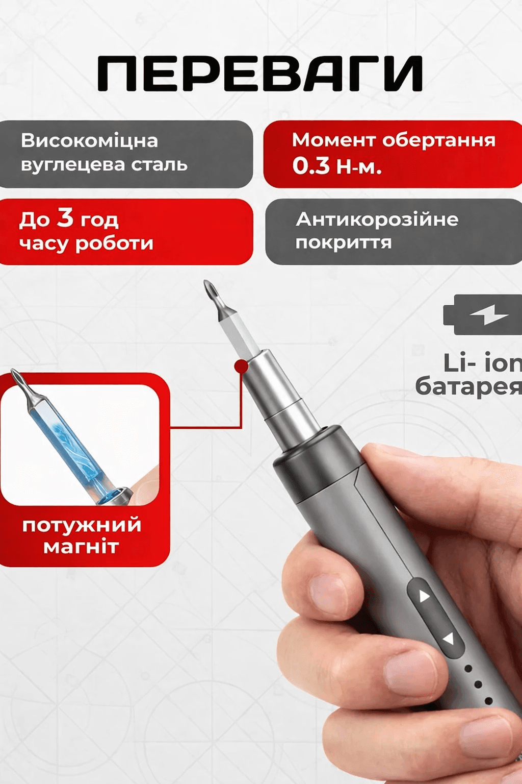 Пополните свою мастерскую этим многофункциональным набором. Электрическая аккумуляторная отвертка с битами NanoFix – это выгодное приобретение для мастеров, любителей самостоятельного ремонта и всех, кто ценит качественный инструмент для точных работ.