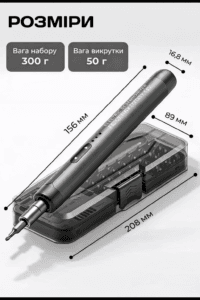 - Комплектация: Электрическая отвертка; 38 насадок для отверток; 1 зарядный кабель; 6 медиаторов для разборки; Кейс