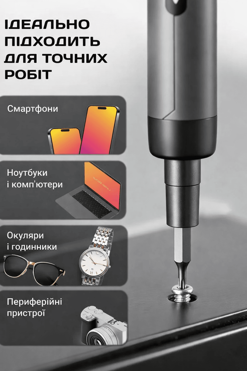 Набор аккумуляторных отверток 46в1 NanoFix – универсальный помощник для точного ремонта и сборки. Идеально подходит для ремонта сотовых мобильных телефонов, ноутбуков, планшетов, цифровых камер, наручных часов и популярных игровых консолей, таких как PS5, Xbox. Этот профессиональный инструмент справится с любой прецизионной задачей.