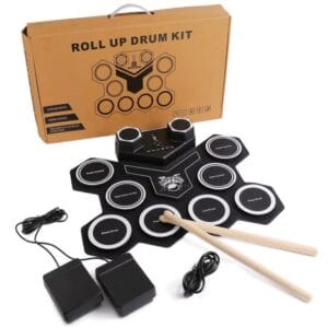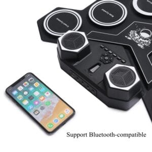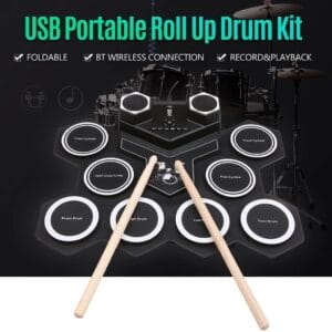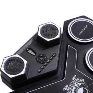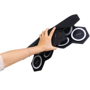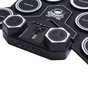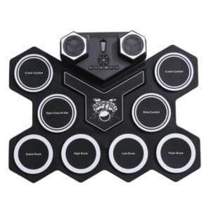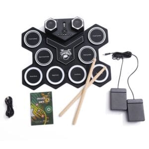 Портативная электронная барабанная установка отлично подойдет не только для музыкантов, а также и для детей благодаря компактной конструкции и простому управлению. С ней Вы сможете с легкостью создавать музыку, научившись держать ритм, и играть в полную силу со всеми ударами классической барабанной установки. Она включает 2 педали и пэды малого барабана, баса и тарелок.