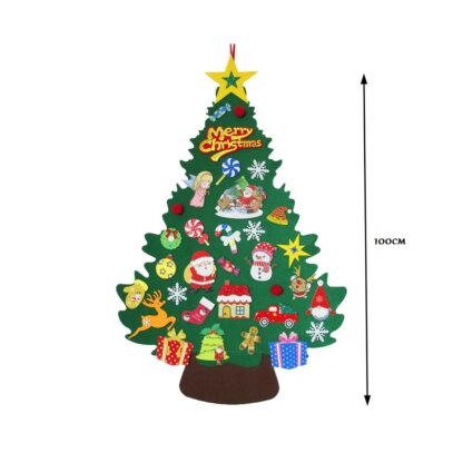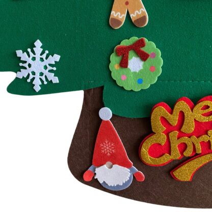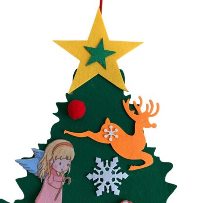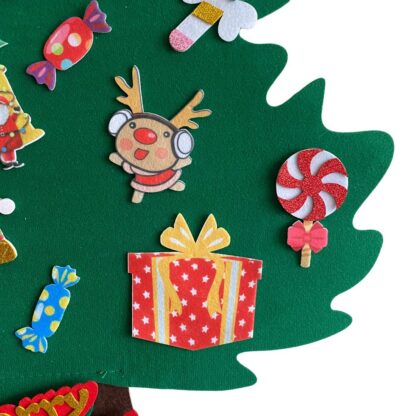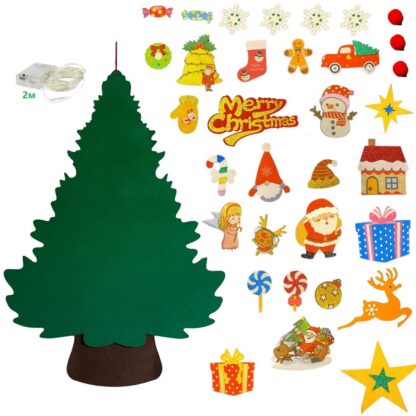 Продуманный дизайн позволяет с легкостью декорировать елку разнообразными милыми игрушками – подарками, конфетами, оленями, снежинками, шариками и Сантой, сделанными из высококачественного гипоаллергенного фетра. Благодаря простому и надежному креплению, а также компактному размеру изделия, дети справятся с этой задачей с огромным удовольствием.
