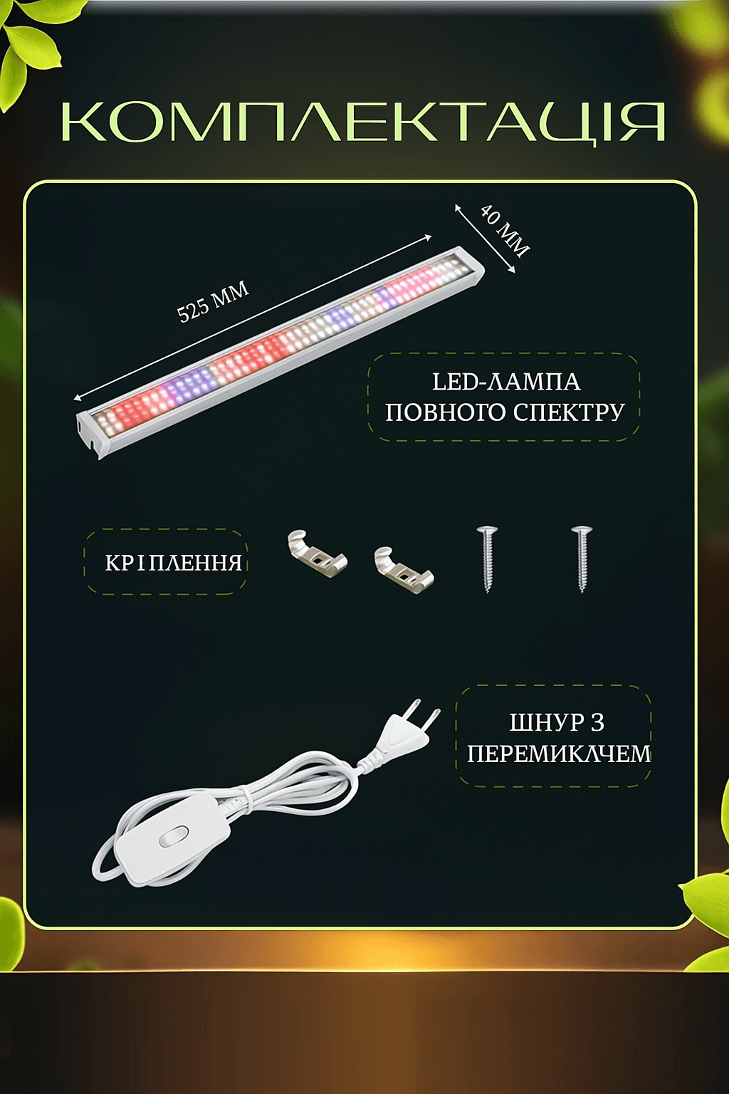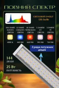 Фитолампа для растений, рассады, цветов Folem Flora, полный спектр, 220V, эффективность 100W, потребление 25W