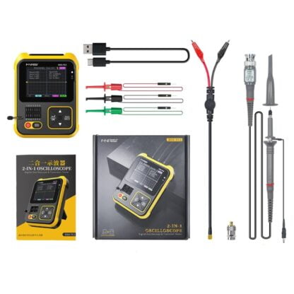 - Комплектация: осциллограф DSO-TC2, USB кабель USB-A на type-C для зарядки, кабель c зажимами типа “крокодил” для работы с генератором и комплект кабелей для работы с ESR-тестером, инструкция на английском языке;