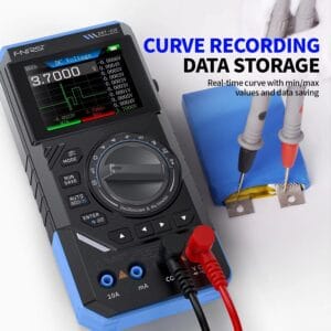 - Всесторонние функции мультиметра: FNIRSI DST210 включает в себя множество функций, таких как режим записи, автоматическое измерение, AC/DC напряжение, AC/DC ток, сопротивление, емкость, диод/непрерывность, частота, температура, удержание данных для различных измерений.