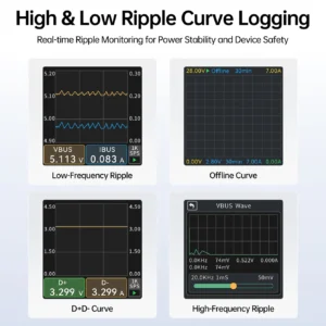 Одним из главных преимуществ устройства является поддержка различных протоколов быстрой зарядки. Прибор отображает напряжение, силу тока, мощность, емкость и энергию, позволяя точно оценить работу подключенного оборудования. Высокоточная электроника обеспечивает стабильные и корректные измерения.