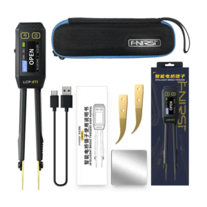- Комплектация: пинцет LCR-ST1, одна пара прямых насадок , одна пара изогнутых насадок, USB – Type-c кабель, магнитное крепление, сумочка для хранения, инструкция