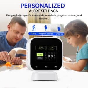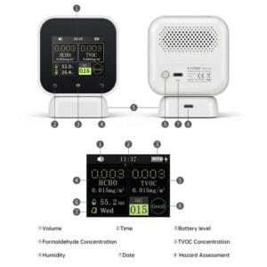 - Регистрация данных – отслеживает изменения HCHO и TVOC для долгосрочного управления качеством воздуха.