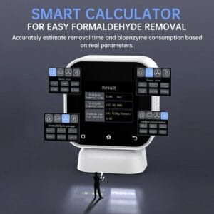 - Интеллектуальный калькулятор – оценивает время и количество материалов, необходимых для удаления формальдегида.
