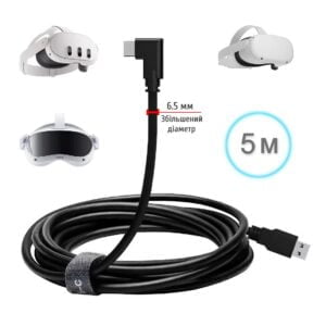 Кабель Oculus Link для Quest и Pico 4 – это высокоскоростной кабель для подключения гарнитуры Meta Quest 1, 2, 3, 3S, PRO и Pico 4 к ПК. Благодаря этому аксессуару вам станут доступны ПК версии игр. Кабель Oculus Link гарантирует предельную производительность для компьютерных игр в виртуальной реальности при одновременном питании гарнитуры. Oculus Link интегрирует гарнитуры Meta Quest и Pico 4 с ПК или станцией, предоставляя Вам доступ к широкому ассортименту игр и приложений из библиотеки Oculus Rift. Длина кабеля 5 м, вес 300 грамм. Он довольно гибкий, но все же чувствительный к заломам. Кабель обеспечивает надежный, эффективный и стабильный контакт устройств. Кабель Oculus Link создан как аксессуар для Meta Quest 2, 3, 3S, Pico 4 от Oculus. Тип кабеля USB A – USB C, что максимально удобно в использовании.