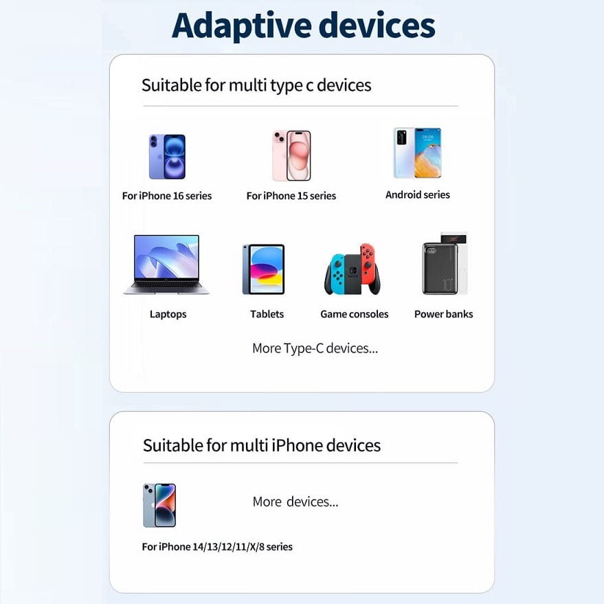 Кабель SanGuan подходит для зарядки различных типов устройств, таких как Android, iPhone, iPad, что делает его удобным для использования в повседневной жизни.