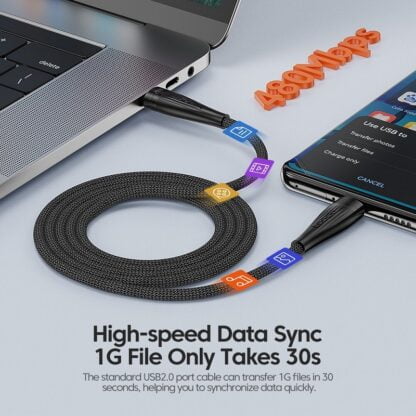 Провод имеет тканевую оплетку, которая защищает от перегибов и изломов. Нейлоновая оплетка высокой плотности, устойчива к износу, растяжению, спутыванию. Для лучшей защиты в месте соединения провода и разъема предусмотрена усиленная удлиненная защита для предотвращения изломов и трещин при частом использовании. Кабель Toocki USB подходит для зарядки домашней техники и электроники от обычной розетки через блок питания, для синхронизации телефона с компьютером для передачи данных и для подключения к колонке для прослушивания музыки.