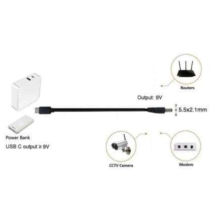 Универсальный кабель Type-C to DC 9V можно использовать для подачи питания от зарядного устройства с поддержкой Power Delivery (PD). К примеру при отключении электричества питать роутер от повербанка и продолжать пользоваться интернетом (если провайдер продолжает подавать интернет кабелем к роутеру).
