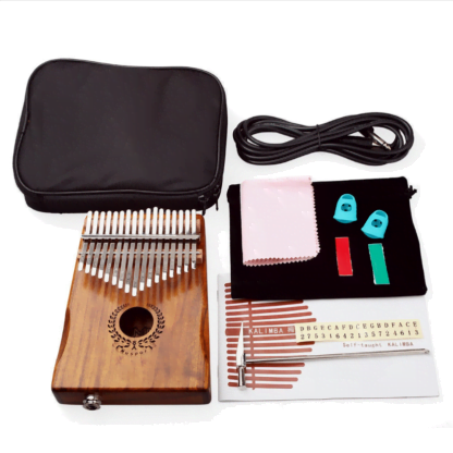 Калимба Muspor Kalimba имеет встроенный звукосниматель с разъемом 6.3 Jack, ее можно подключить к усилителю во время публичного выступления. Металлические клавиши калимбы закреплены на деревянной коробке, которая выполняет роль резонансной камеры. Корпус инструмента сделан из цельного дерева акации, а удобный паз на корпусе делает игру более комфортной. Отверстия, обеспечивают чистый звук. Вы можете создать творческий звуковой эффект используя два звуковых отверстия сзади.