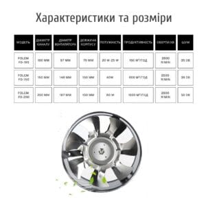 У вентилятора Folem компактные габаритные размеры, есть возможность установки в стене и подсоединения к выносному патрубку вентиляции. Он изготовлен из металла высокого качества, и, благодаря этому, обладает отличными аэродинамическими показателями и тихо работает.