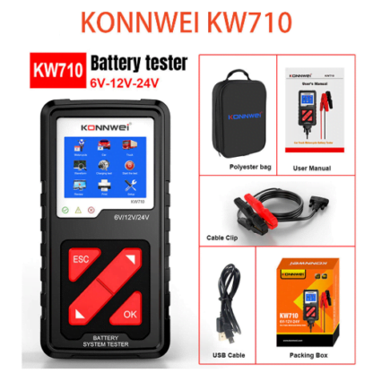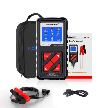 Тестер аккумуляторных батарей KONNWEI KW710 может эффективно анализировать и считывать важные данные автомобиля, такие как напряжение, внутреннее сопротивление, усилитель холодного пуска и емкость АКБ, состояние аккумулятора и состояние заряда. Он обеспечивает точные результаты, рассчитывает способность батареи к холодному запуску и степень старения, что позволяет быстрее и точнее отремонтировать автомобиль. Он поддерживает все батареи 6-24 В, включая обычные залитые свинцово-кислотные аккумуляторы, плоские AGM, спиральные AGM, гелиевые и EFB аккумуляторы и т. Д. От грузовиков, мотоциклов, бензиновых, дизельных, гибридных электромобилей.