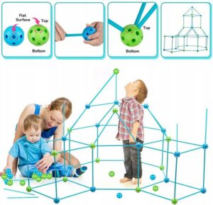 Крепкие пластиковые стержни легко собирать и разбирать, что позволяет детям конструировать все, что приходит им в голову. Они могут играть весь день, строить замки и крепости, плыть по семи морям на пиратском корабле или летать на Луну на ракете! А когда наступает ночь Форт станет прекрасным местом, для того чтоб почитать на ночь сказку о таинственных приключениях.