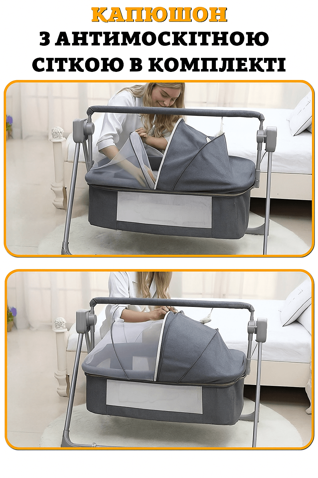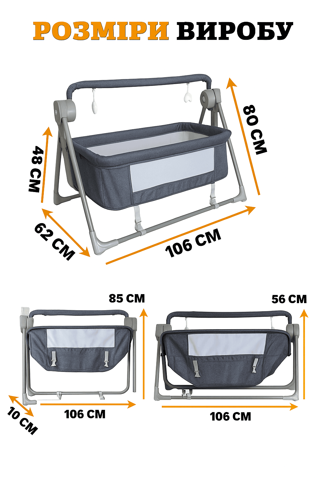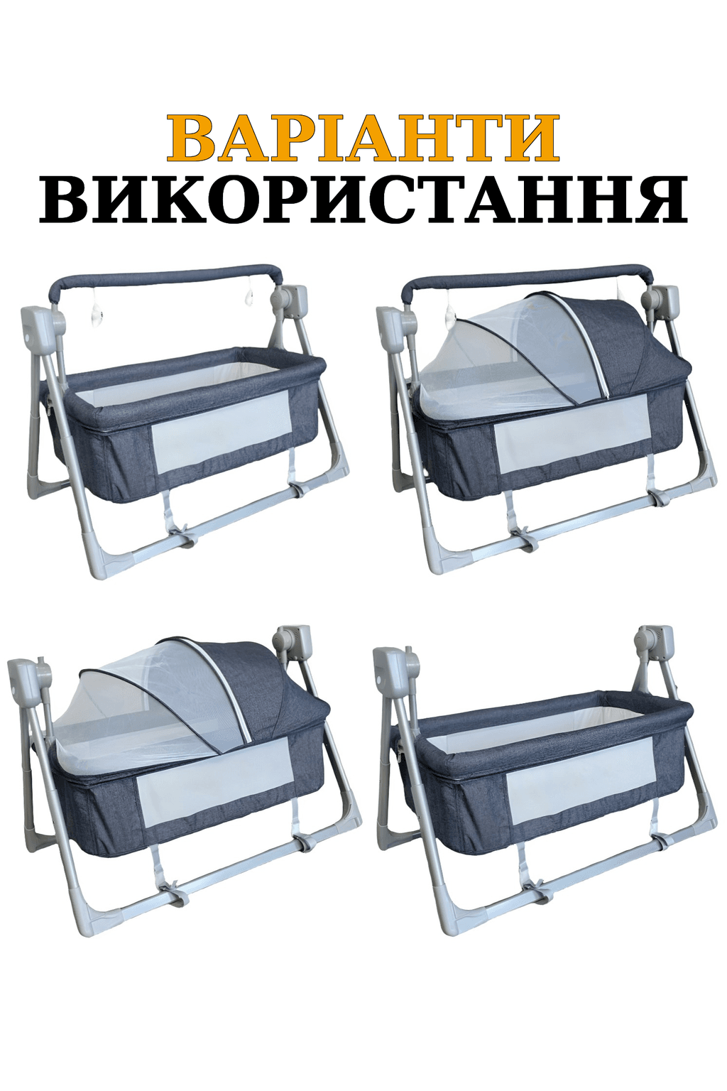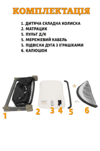 - Комплектация: колыбель, матрасик, пульт ДУ, блок питания с кабелем, подвесная дуга с игрушками, капюшон, инструкция на английском
