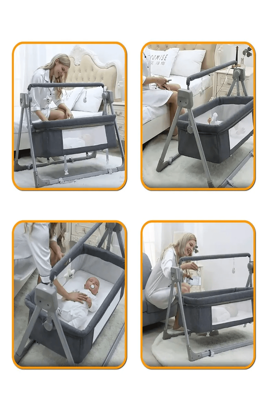 Детская кроватка Folem Luna – не только колыбель, но и качели для малышей, она также имеет регулируемый балдахин, который эффективно блокирует прямой свет и обеспечивает младенцам хороший сон. Интеллектуальная электрическая кроватка освобождает руки матери и легко убаюкивает малыша, облегчая уход за ним и обеспечение его сна.