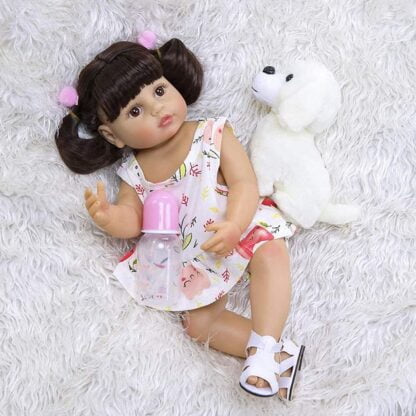 Гарна велика лялька, дуже натурально виглядає, як справжня дитина, навіть має сертифікат про народження. Якісно зроблена, і волосся, і вії, шкіра гарно розмальована, з рум’янцем і всіма деталями.