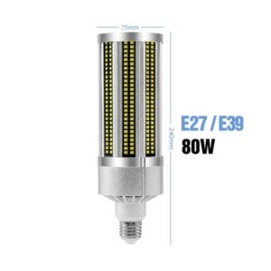Лампа E27 Кукуруза KukoBot используется в разных приборах постоянного света с патроном E27. Благодаря включенному в комплект переходнику, она также подходит к цоколю Е39. Мощность одной лампы составляет 80 W, а эффективность освещения достигает 500 W. Такой свет максимально приближен к яркому естественному.
