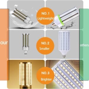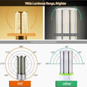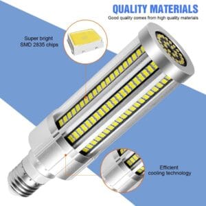 - Лампа E27 Кукуруза KukoBot в цоколь E27 сделана из алюминия и пластика, чтобы обеспечить рассеивание тепла и хорошую коррозионную стойкость. Не содержит свинец или ртуть, обеспечивает яркий свет без вредного УФ или ИК излучения.