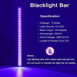 - Ультрафиолетовая лампа отлично подходит для вечеринок, подсветки неоновых плакатов и картин, декора комнаты на Хэллоуин, неонового макияжа, художественных работ и т.д.