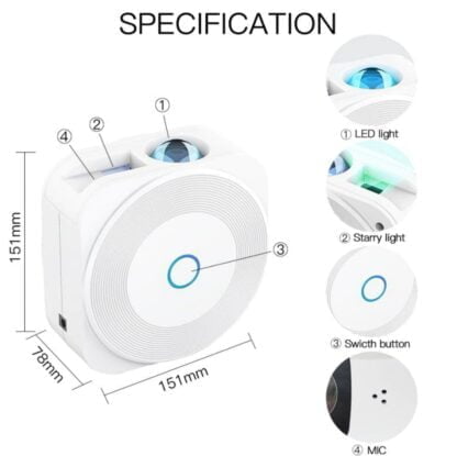 К другим преимуществам проектора галактики относится то, что у Вас есть возможность настроить таймер и через выбранное Вами время проектор отключится автоматически. Эта функция очень удобная, так как Вам не придется беспокоиться о том, что проектор будет светить всю ночь, или о том, что нужно зайти в детскую комнату и отключить ночник, не потревожив спящих детей.